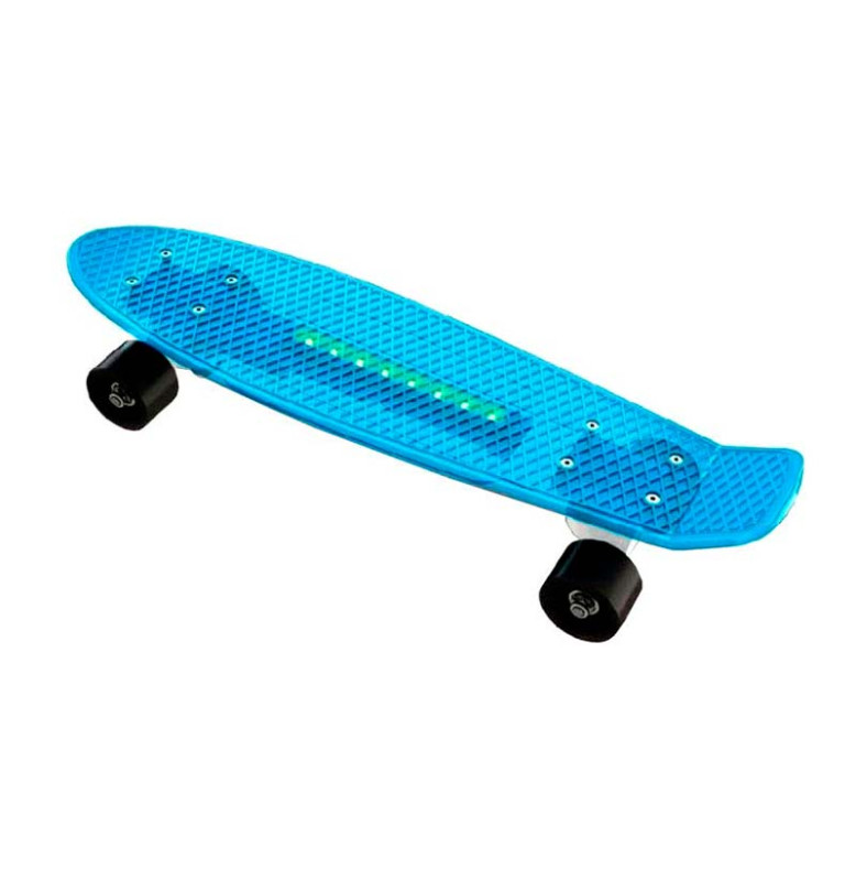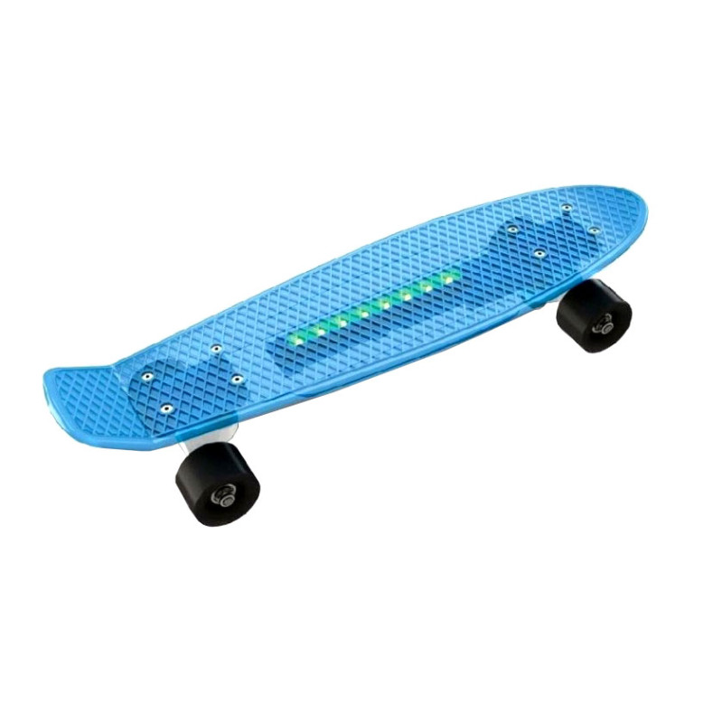 Скейт синій - сучасний скейтборд синього кольору, виконаний у класичному стилі, складається з пластикової прозорої дошки зі світловими ефектами і чотирьох поліуретанових коліс,