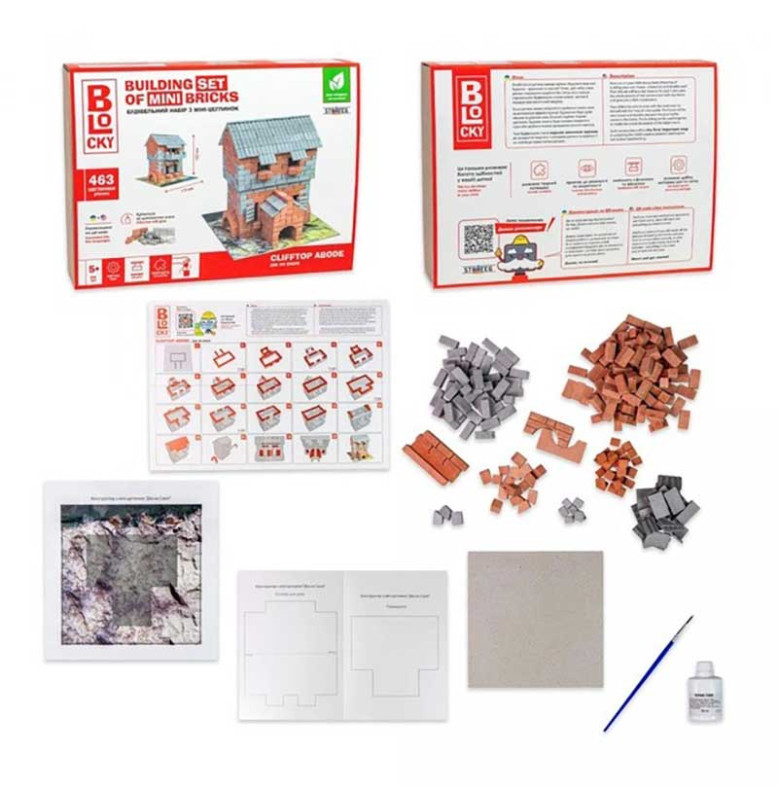 Комплект поставки | цеглинки з гіпсу, клей ПВА, пензлик, доп.елементи |