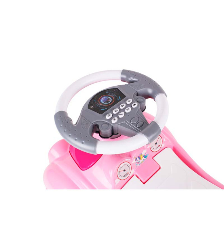 А електронне руль принесе море радості Вашим малюкам під час катання на автомобілі. Вісім кнопок – це вісім різноманітних сигналів: запуск двигуна, різке гальмування, екстрені служби поліції, швидкої та пожежної допомоги, попереджувальний «фа-фа» та весела музика. Він надійний, міцний, практичний та зручний. Функціонал іграшкового автомобіля продумань для перевезення покупок та різних найнеобхідніших речей - є багажник та спеціальний відсік під сидінням!