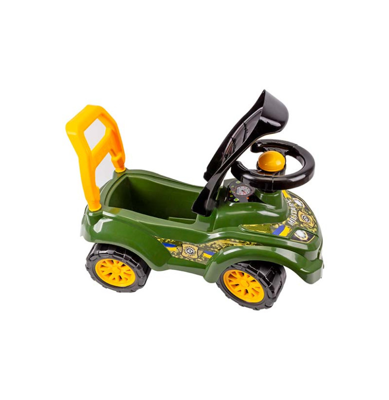 Зручна спинка підтримує дитину під час катання. Також за допомогою спинки батьки можуть підтримувати дитину та допомогти керувати. Імітація вихлопної труби забезпечує стійкість автомобіля від перекидання.