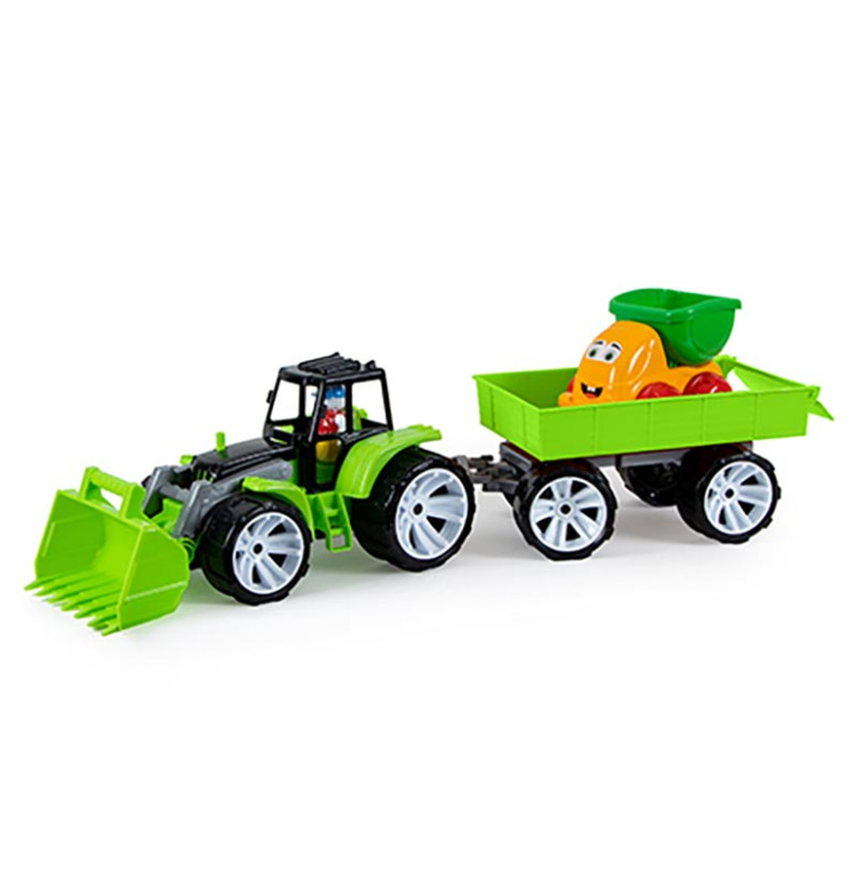 Ідеальний для розвитку моторики та соціальних навичок — трактор у комплекті з причепом дарує додаткові можливості для перевезень, побудови сюжетів та колективних ігор з друзями.