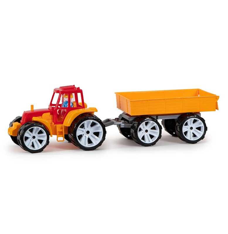 Удобный в использовании — у трактора простые элементы, которые легко двигаются и соединяются, а прицеп позволяет перевозить игрушки и придумывать новые сюжеты игры. Надежная конструкция обеспечивает комфорт во время активных забав.