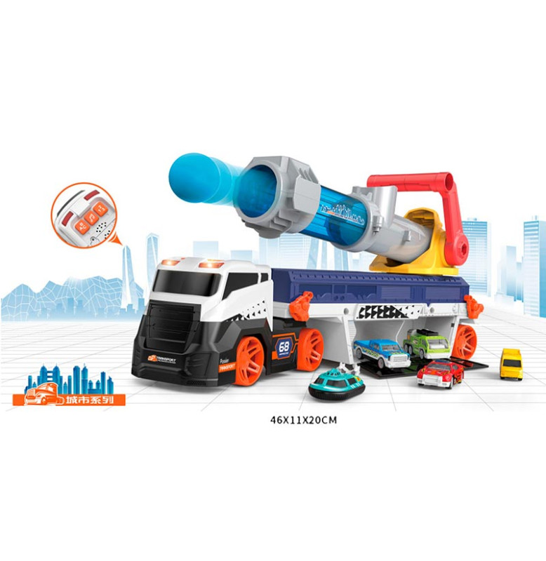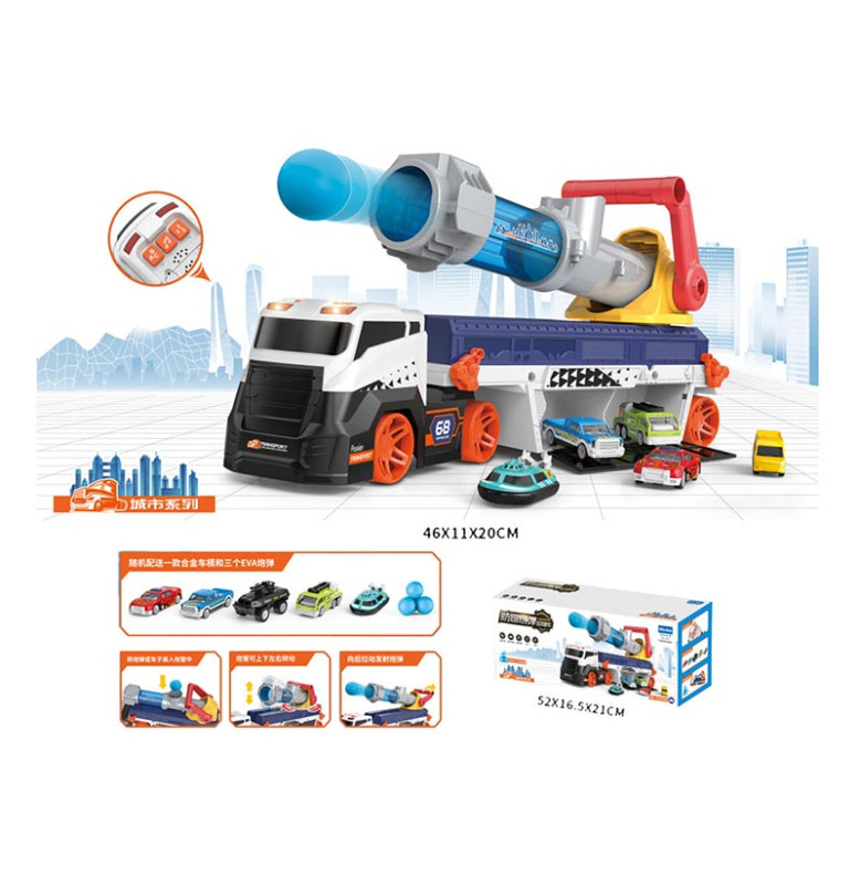 Яскрава та динамічна іграшка, яка поєднує в собі силу вантажівки, місткість автовоза та захопливий елемент — ігрову пушку. Створена для того, щоб розпалити уяву дитини: вона стає одночасно водієм, рятувальником і командиром на полі бою у казкових пригодах.