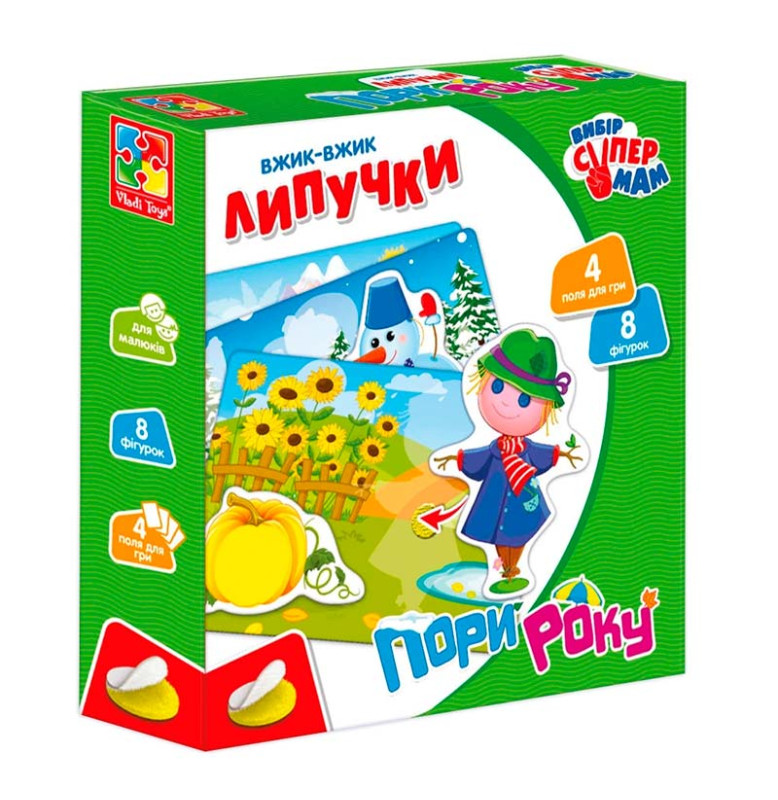 Вжик-вжик Липучки Пора року укр. - гра настільна Пори року з липучками російською мовою дасть змогу дізнатися які пори року існують і чим вони відрізняються! Знаходь відповіді на ці запитання та вивчай їх разом із грою на липучках Пори року.