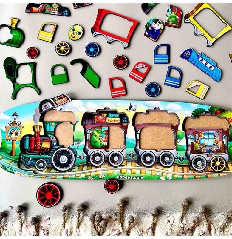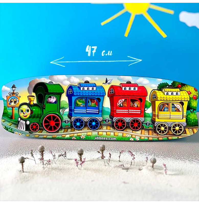 Деревянный сортер-вкладыш В«Веселый поезд – 3 вагонаВ» (арт. ПСФ019) — это яркая развивающая игра для малышей от 2 лет, созданная украинским брендом Ubee.